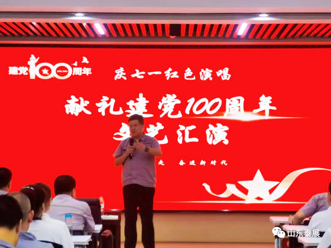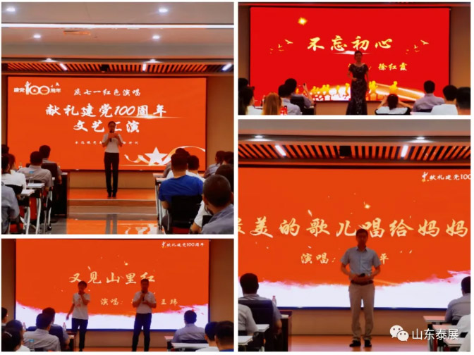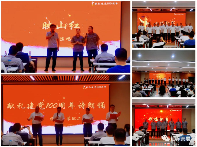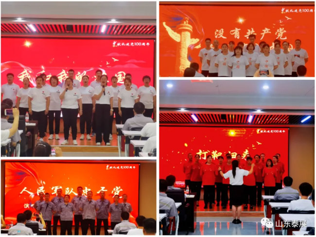 為隆重慶祝中國共產(chǎn)黨成立100周年,進一步加山東泰展機電科技股份有限公司黨員隊伍的建設(shè)。6月30日18點,山東泰展機電科技股份有限公司結(jié)合“學(xué)黨史、知黨情、強黨性”的總體思路,以“百年禮贊頌黨旗,同心起航唱紅歌”為主題,組織公司員工歡聚一堂,通過唱紅歌、詩朗誦等表演形式慶祝中國共產(chǎn)黨成立100周年,加強公司職工及黨支部成員對黨的光輝歷史的了解,促使公司職工積極向黨組織靠攏,增強愛黨愛國的責(zé)任感和使命感。
