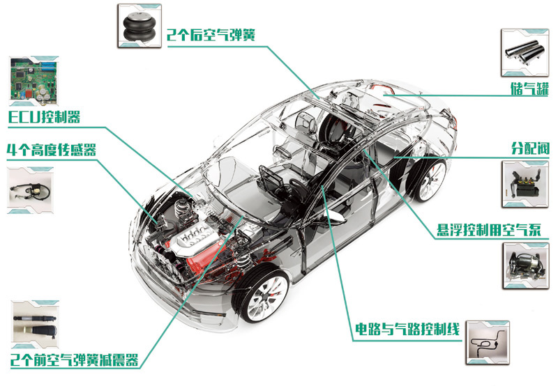 空氣懸架系統(tǒng)是由行車控制電腦,空氣彈簧,壓縮機(jī),減震器,高度傳感器等組成。通過(guò)壓縮機(jī)提供有效的壓縮空氣給空氣彈簧來(lái)調(diào)整空氣懸架系統(tǒng)的高度,形狀和阻尼等。從而實(shí)現(xiàn)空氣懸架系統(tǒng)整體控制車身振動(dòng)和車身高度。根據(jù)駕駛?cè)藛T對(duì)車輛的控制要求,來(lái)逐漸實(shí)現(xiàn)底盤系統(tǒng)的軟硬來(lái)調(diào)整懸架,從而實(shí)現(xiàn)了車輛駕駛穩(wěn)定性和乘坐舒適性的特種要求。車輛目前的空氣懸架有主動(dòng)懸架和半主動(dòng)懸架,就是通過(guò)車輛行駛速度,路況來(lái)確認(rèn)車輛底盤的軟硬,給乘車人一個(gè)比較舒適的環(huán)境,滿足乘車人員對(duì)車輛的更高要求。